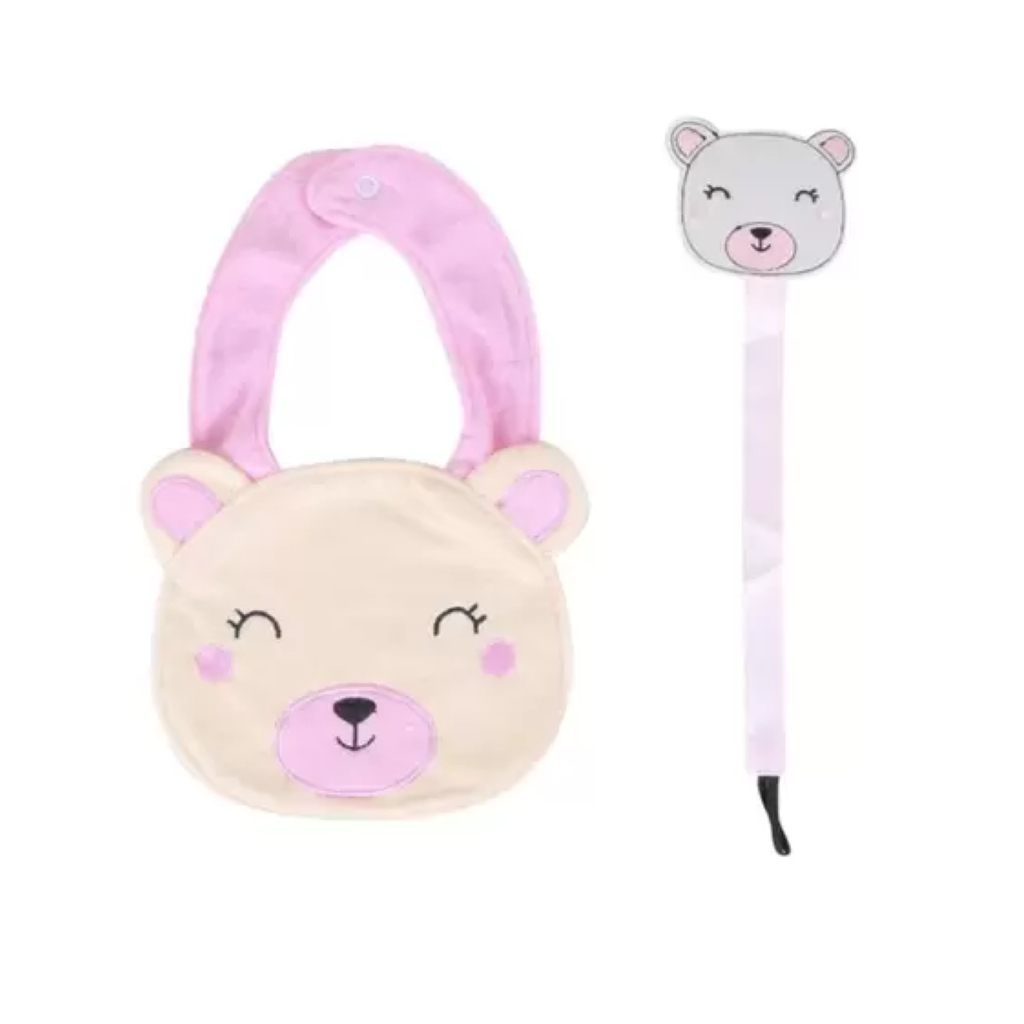 Babador Divertido Com Prendedor Ursa PimpolhoO Babador infantil divertido com prendedor de chupeta é um daqueles itens indispensáveis na rotina com os pequenos. Na hora de comer, ele protege as roupinhas contra sujeiras e manchas de comida, e ainda conta com um prendedor de chupeta para evitar que ela caia durante as refeições. Possui camadas extras de tecido que absorvem a umidade sem prejudicar a saúde do bebê, e conta com fechamento em botão para que não solte. Com estampas divertidas e materiais de qualidade, você e os pequenos vão se apaixonar por esse babador.