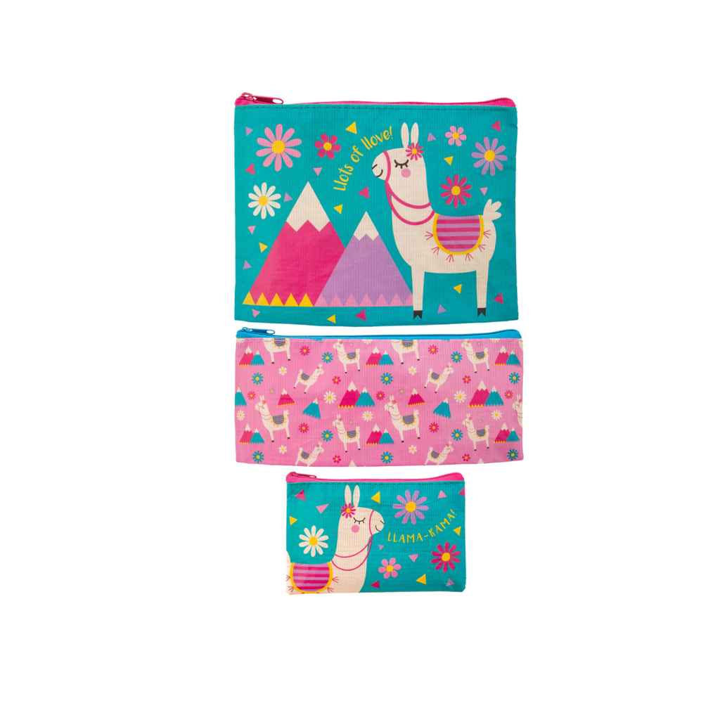 CARACTERÍSTICAS ESPECIAIS: Feitas de garrafas plásticas 80% recicladas, essas sacolas são úteis e boas para o meio ambiente. Cada bolsa tem um topo com zíper.