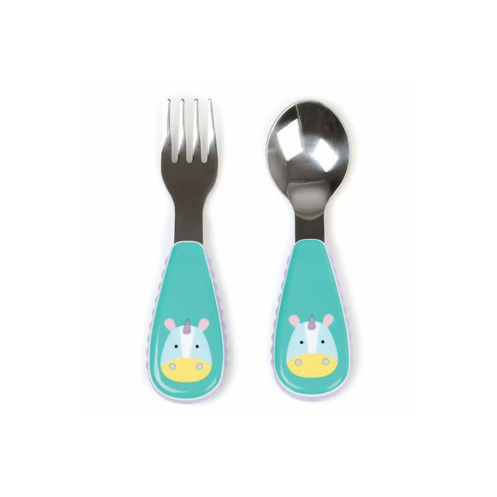 O Kit de Talheres Zoo Unicórnio da Skip Hop é ideal para as crianças. Vem com garfo e colher com formato anatômico. Feito de melamina e inox, os talheres possuem laterais dos cabos emborrachados que dão maior conforto e segurança para as crianças segurarem. Elas vão amar fazer as refeições com os amiguinhos Zoo!