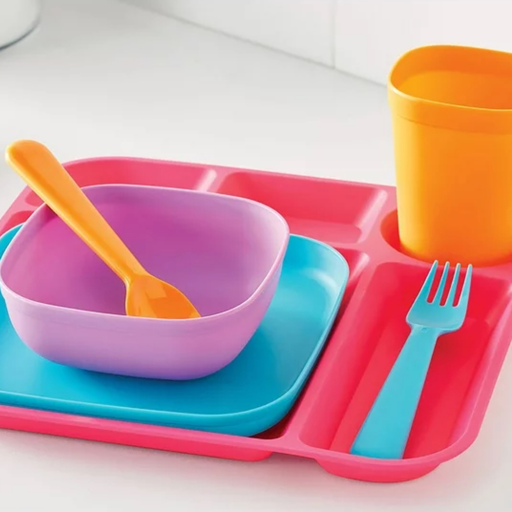 O conjunto de jantar completo perfeito para seus filhos. As crianças adoram as cores divertidas. Perfeito para os pais, este conjunto de louça de 24 peças é simples de limpar, empilhável para economia de espaço e leve para facilidade de uso e portabilidade. Cada conjunto de refeições oferece grande valor e inclui o prato dividido, prato, tigela, copo, colher e garfo. O garfo é equipado com pontas sem corte para uso seguro. Deixe-nos ajudá-lo a tornar a hora da refeição um pouco mais fácil! Este conjunto é um acessório de cozinha indispensável para a família consciente da saúde. Os pais adoram os designs duráveis, ótimo valor.