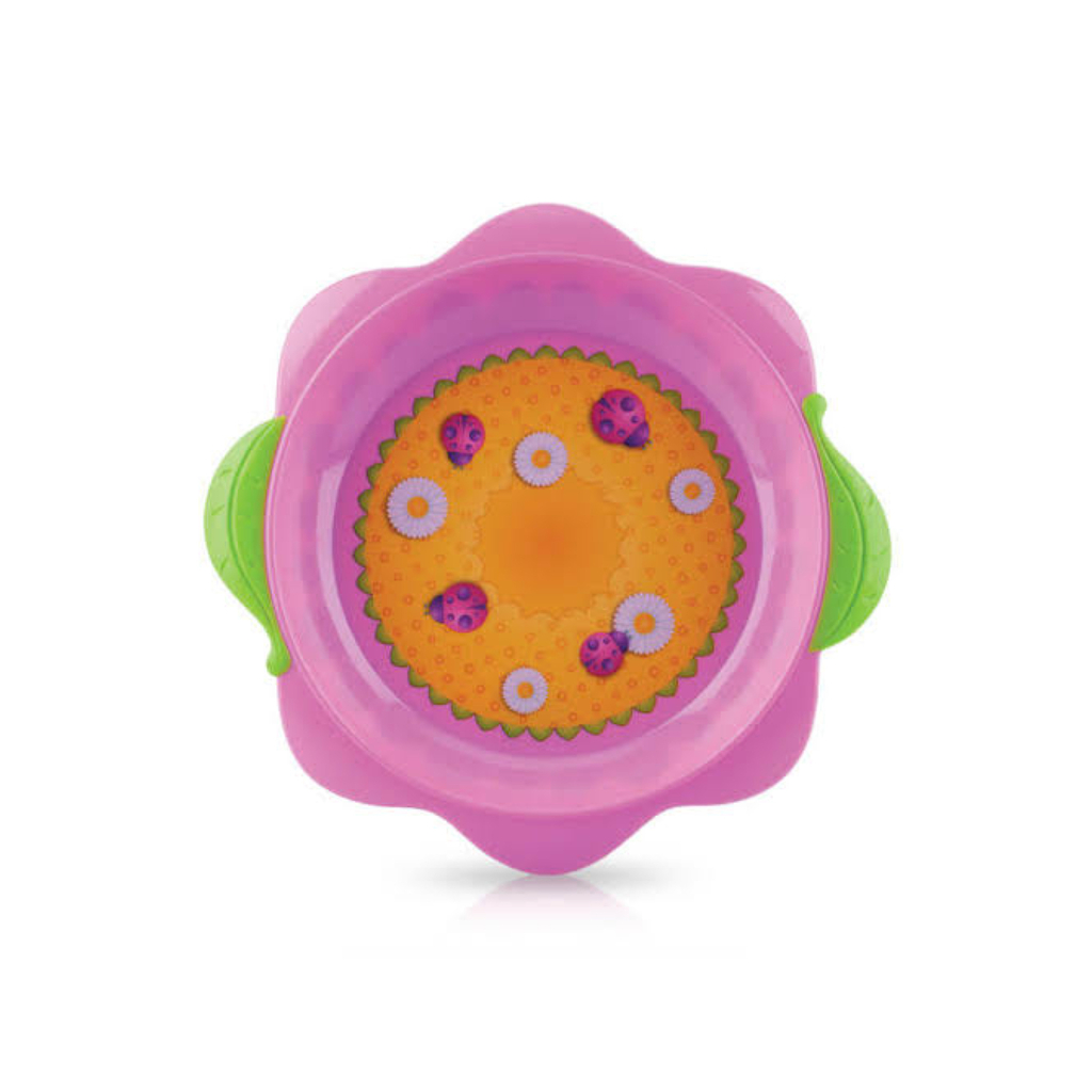 O Pratinho Flor é ideal para os bebês começarem a se alimentar sozinhos e é adequado para todos os tipos de alimentos. Pode ser utilizado no micro-ondas e sua base antiderrapante e suas alças em formato de folha facilitam o manuseio e dão mais segurança para o bebê.